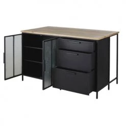 Adepte des maisons de famille au charme traditionnel ? Craquez sans plus attendre pour le meuble bas de cuisine 6 tiroirs en pin recyclé effet vieilli AUBAGNE. Pin recyclé à la finition vieillie, pierre bleue anthracite, métal… Tous les ingrédients sont réunis pour réaliser une recette authentique. Vous ne serez plus en manque de rangement grâce à ses 6 tiroirs sur glissières métalliques invisibles avec fermeture douce et ses 2 barres à torchons. Saupoudrez le tout avec des fileurs sur les côtés et des pieds réglables et vous aurez un meuble de cuisine qui aura tout bon tant esthétiquement qu’au niveau fonctionnel.